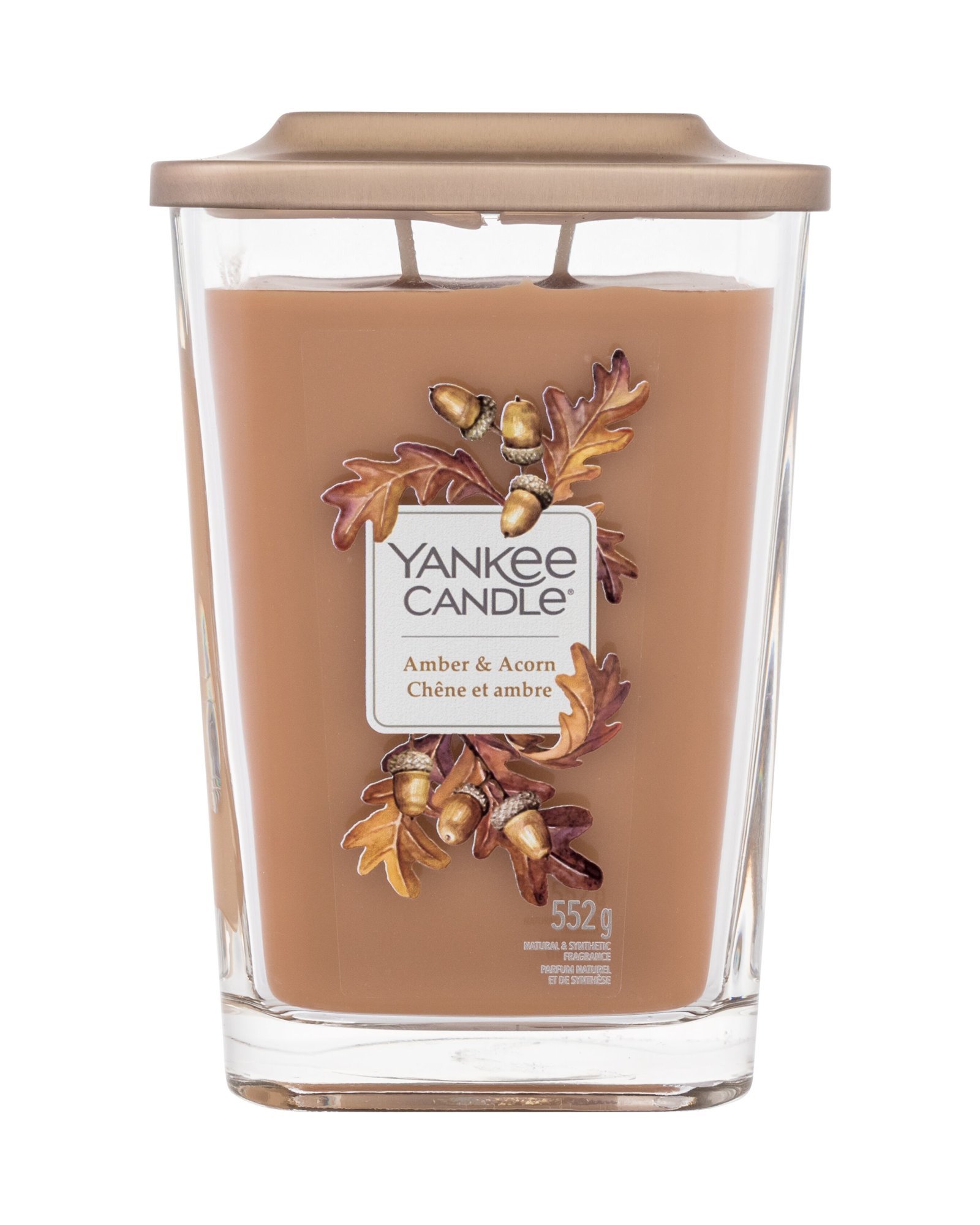(Ambra & žaludy) Aroma hnědých dubových listů a zlaté ambry dodávají robustní vůni pačuli a měkkých dřevitýách tónů dotek kořeněné hřejivosti. Charakter vůně: Dřevité Hlava: zlatá ambra, měděné listy Srdce: bílý dub, orientální dřeva Základ: pačuli, bílý dub, vanilka Doba hoření: 65 - 80 h. Svíčka Elevation je vrcholem elegance. Vysoce kvalitní sklo, sojový vosk, nasycený vybranými vonnými esencemi, společně se 2 bavlněnými knoty pro rychlejší voskové jezírko poskytne úžasný a intenzívní zážitek z vůně. Unikátní je také víčko, slouží i jako podstavec. Jeho tvar dobře pasuje do prohlubně ve dnu svíčky, takže je svíčka stabilní. Více plamínků zvýší světelný efekt svíčky. Parametry: 2 knoty, velikost 10 x 10 x 15 cm, 552 gramu°. Případné barevné změny hladké směsi sojového vosku jsou přirozené a neovlivňují kvalitu hoření či charakter a intenzitu vůně.