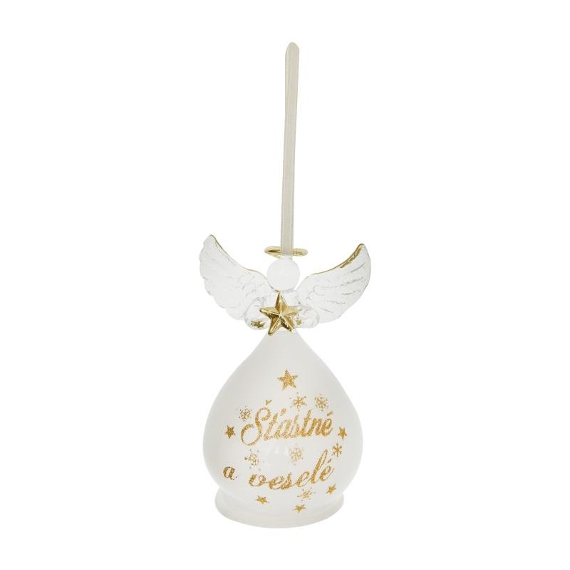 Vánoční dekorace anděl s LED - Šťastné a Veselé
