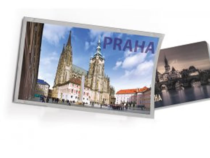 Pohlednice ve tvaru obálky z tvrdého papíru s dárkem uvnitř. Rozměry: 18,5x11 cm. Obsah: magnetka Praha