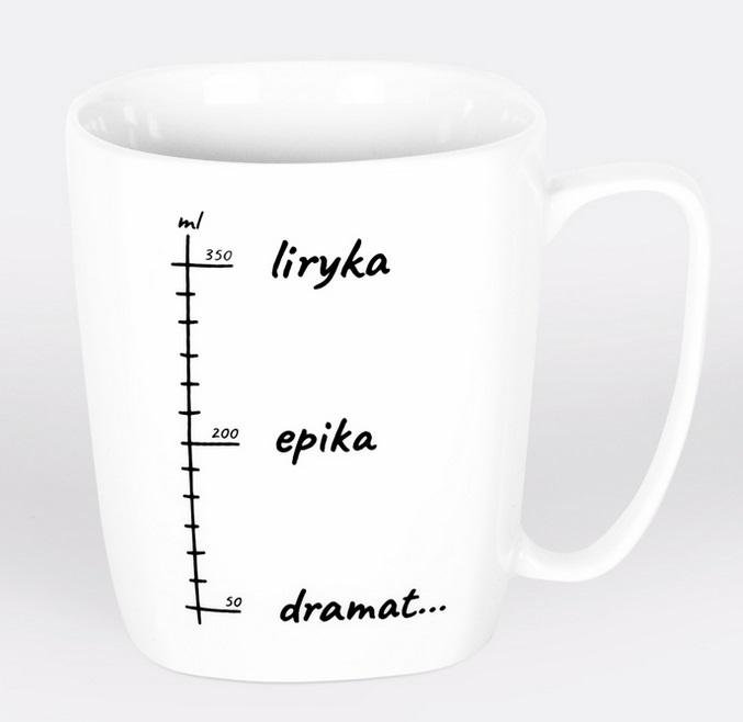 Kubek ceramiczny biały Liryka, epika, dramat...