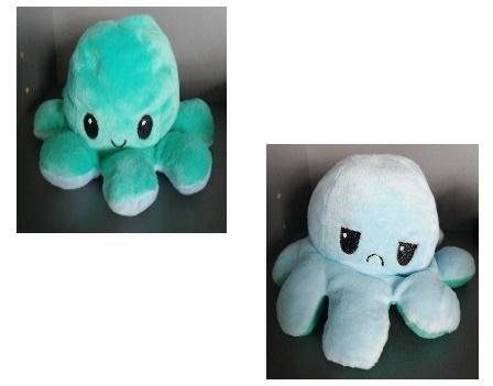 Maskotka-brelok ośmiornica do okazywania uczuć (dwustronna: zadowolona i smutna)wymiary: 10,0 x 4,0 cmmateriał: poliester-plusz, metal