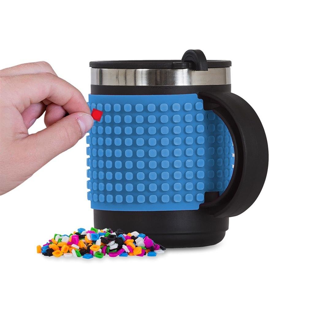 Wysokiej jakości kubek termiczny o pojemności 400 ml z rdzeniem ze stali nierdzewnej i praktycznym wieczkiem sprawi, że napój będzie ciepły lub dobrze schłodzony, przez długi czas. Elegancki uchwyt kubka zapewnia jednocześnie "bezpieczne" picie dzieciom. Dobrze uszczelnione wieczko i zamykane otwieranie doceni każdy, kto potrafi cieszyć się napojami. Powierzchnia boczna kubka pokryta jest unikalnym silikonowym panelem kreatywnym PIXIE CREW TM w kolorze niebieskim. Do każdego kubka dołączono paczkę około 100 darmowych małych pikseli.