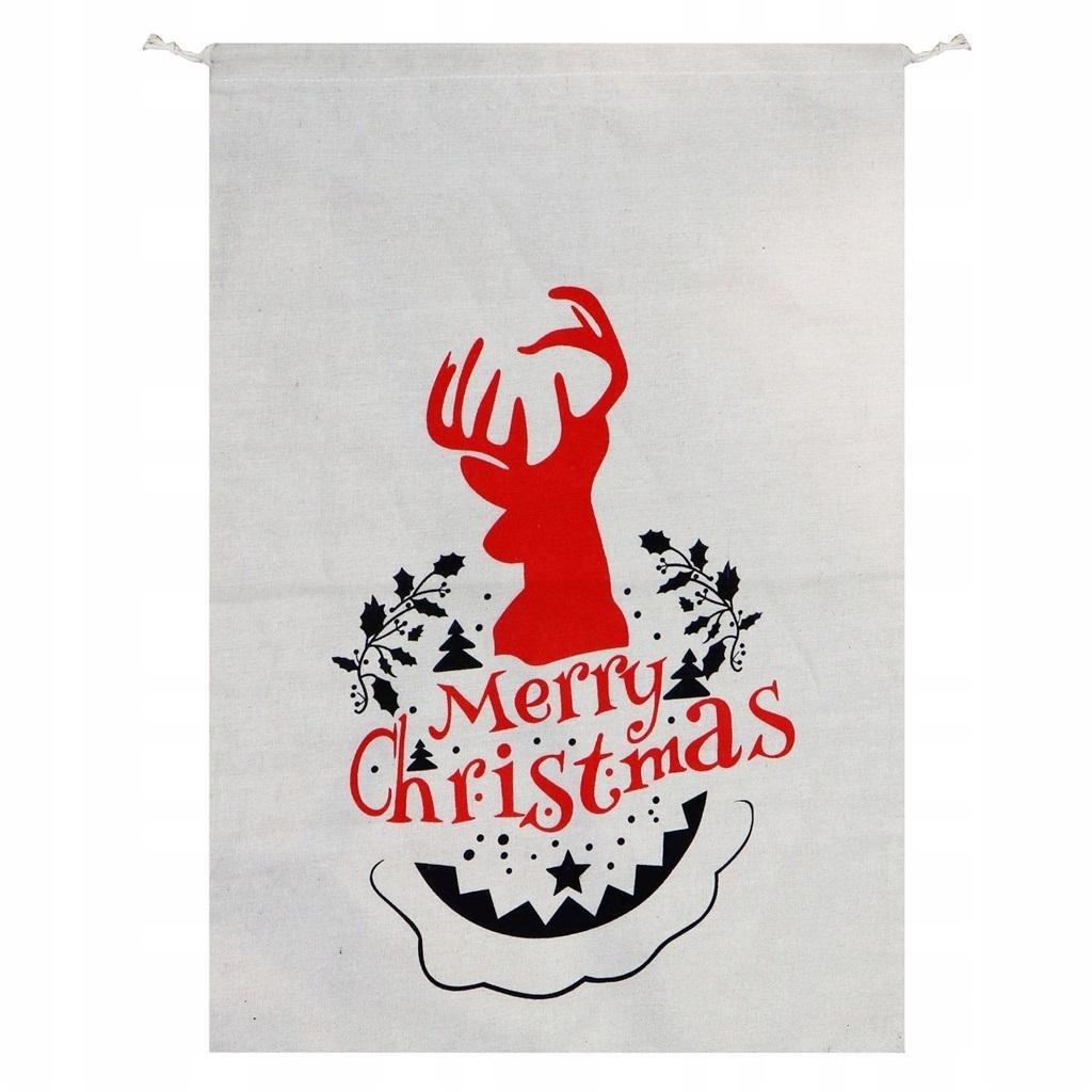 Piękny worek wykonany z wysokiej jakości tkaniny z nadrukiem. Ściągany sznurkiem u góry. Z gustownym nadrukiem. Duży i pojemny pomieści wiele prezentów. Świetna dekoracja domu w czasie świątecznym, jak również super pomysł na zapakowanie prezentów. Wymiary: 50 x 70 cm.