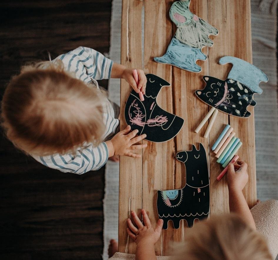 Tabliczki z motywem zwierzaków zachęcają dzieci do rysowania.