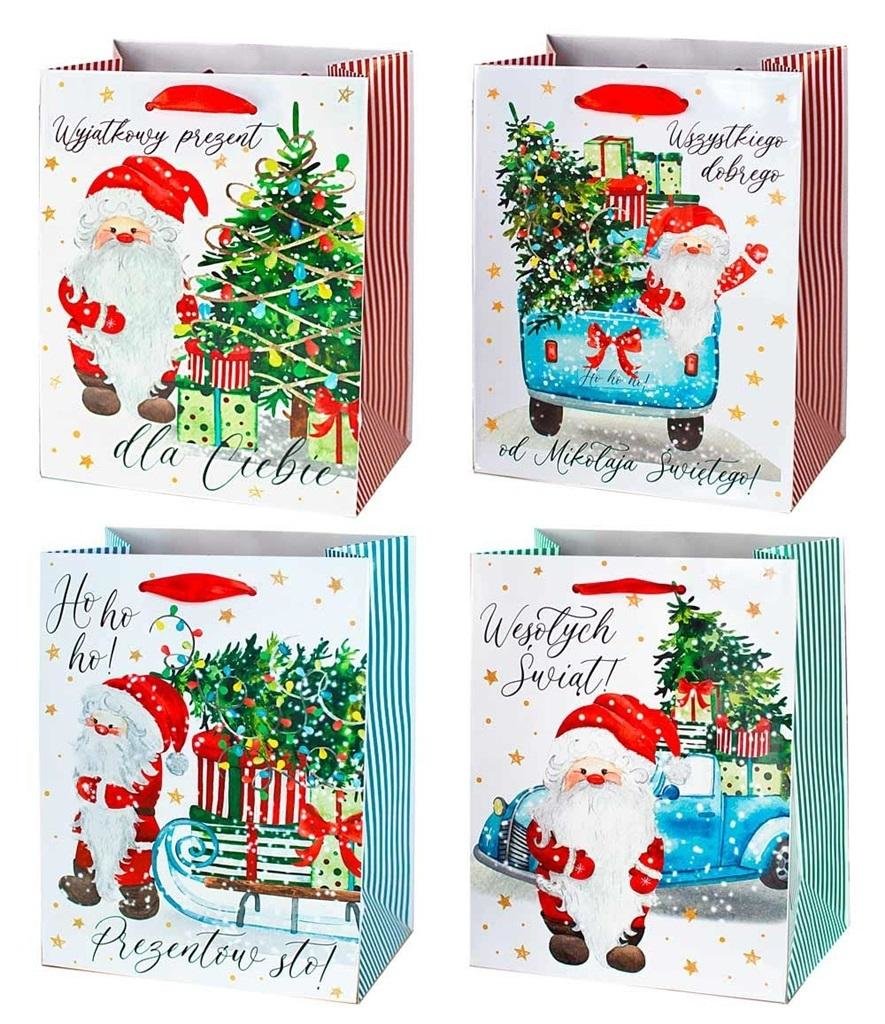 Ozdobne torby papierowe z serii T lakierowane na wysoki połysk, uchwyt z atłasowej tasiemki lub skręcanego sznurka.