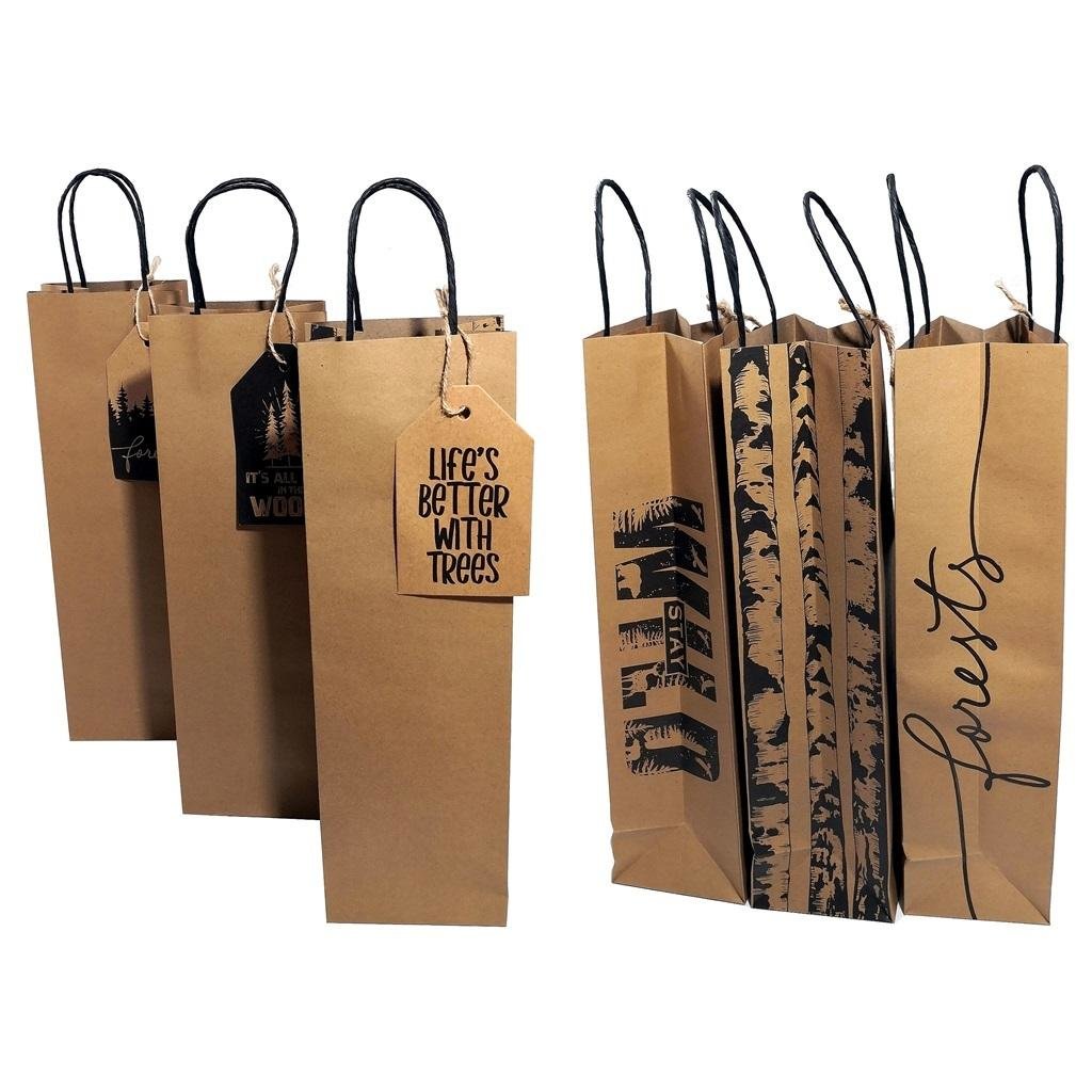 Torebka B FOREST z papieru kraft z elegancką przywieszką, rączki ze skręconego czarnego papieru, mix wzorów wysyłany losowo. číst celé