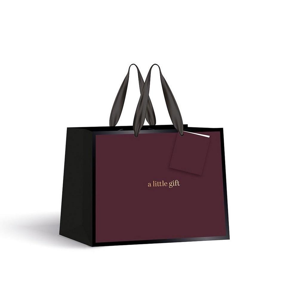 Wyjątkowa torebka do pakowania prezentów. Wykonana z wysokiej jakości papieru 210 g. Eleganckie, matowe wykończenie. Złote, połyskujące detale w technologii hot-stamping. Wzmocniony, sztywny spód. Bilecik z miejscem na życzenia lub imię obdarowywanej osoby. Uchwyty wykonane z atłasowej wstążki. Idealna do szybkiego i efektywnego pakowania prezentów.