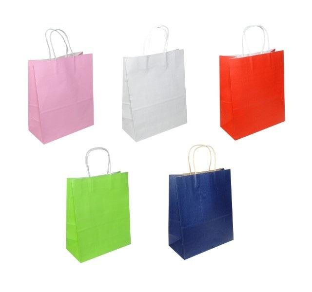 Torba papierowa, jednobarwna torebka na prezenty. Produkt występuje w kilku wersjach kolorystycznych, wybierany losowo. Cena dotyczy jednej sztuki.