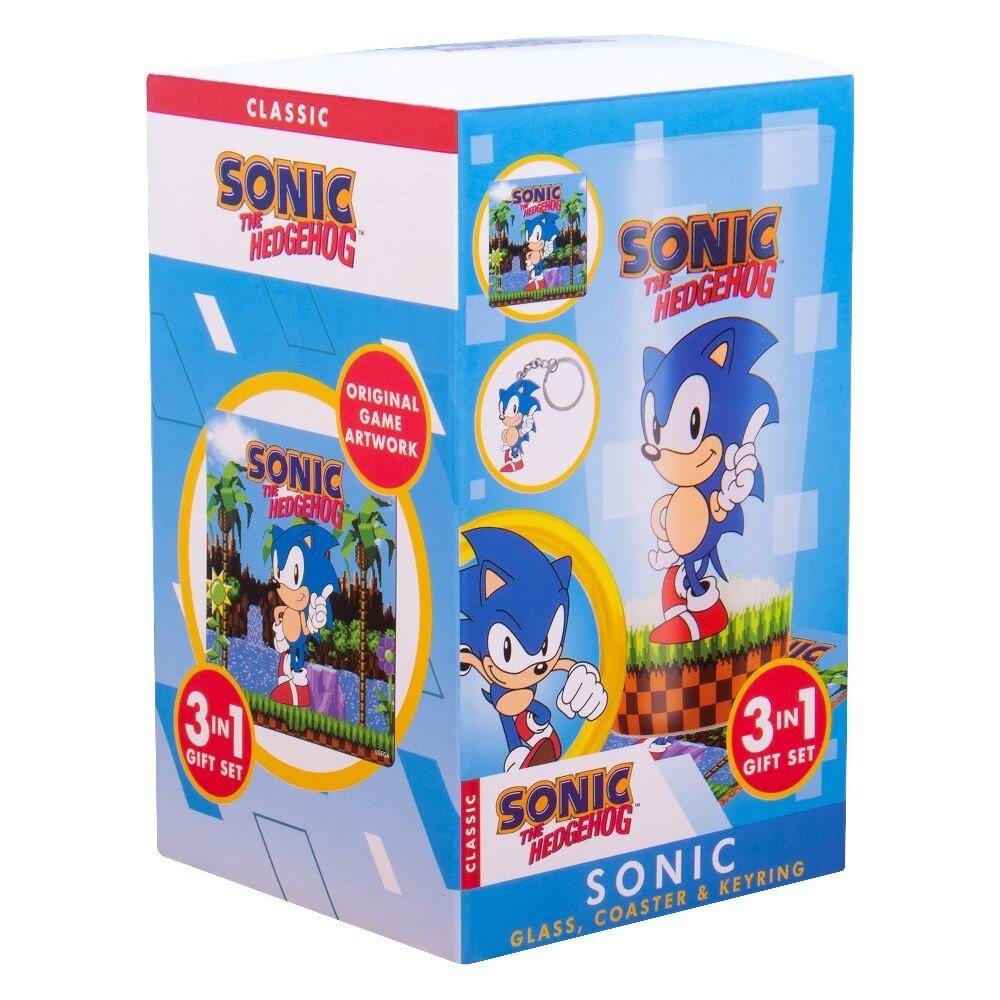 Sonic dárková sada 3 v 1 - klíčenka, tácek a sklenička