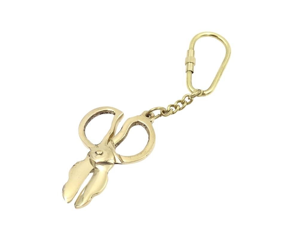 Přívěsek s nůžkami je vyroben z odolné mosazi. Ke klíčům se připíná pomocí odnímatelné karabinky.
