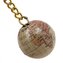 Zeměkoule je vyrobena z plastu a pokryta laminovanou mapou. Kolo a řetěz jsou vyrobeny z kovu. Barevná mapa, béžové oceány, názvy v angličtině.