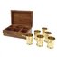 Sada 6ks kovových mosazných panáků v dřevěné krabičce
