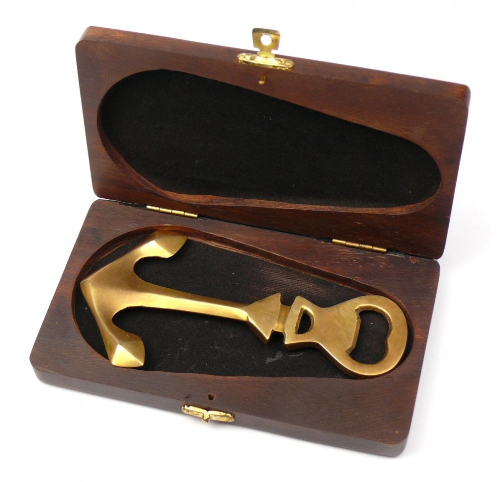 Mosazná kotva - otvírák na láhve v dřevěné krabičce