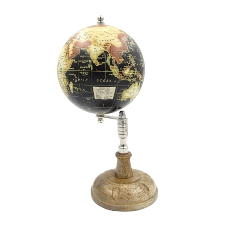 Glóbus černý oceánský je stylová dekorace plná světoběžného charakteru, díky které vám bude ležet celý svět u nohou. Zeměkoule je skvělý dárek pro milovníka cestování, učitele nebo studenta zeměpisu.