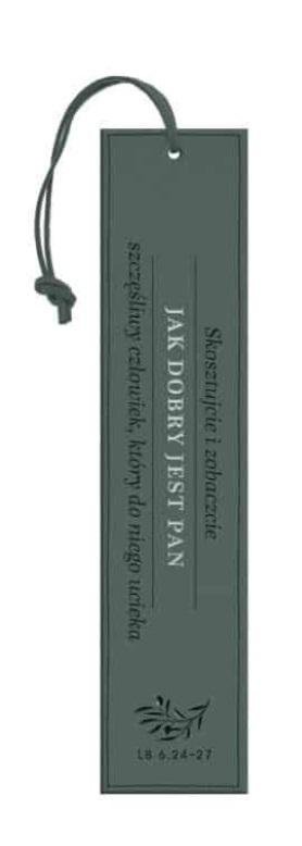 Głównym elementem tej zakładki jest wygrawerowany werset biblijny, który stanowi inspirację i przypomina o duchowym wymiarze czytania. Zakładka może być nie tylko praktycznym dodatkiem, ale również wartościowym towarzyszem w Twojej codziennej lekturze.