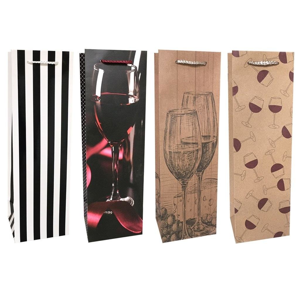 TORBA PREZENTOWA BUTELKA 10,5X33X8,5CM MAT, POŁYSK, KRAFT MIX 4 WZORÓW