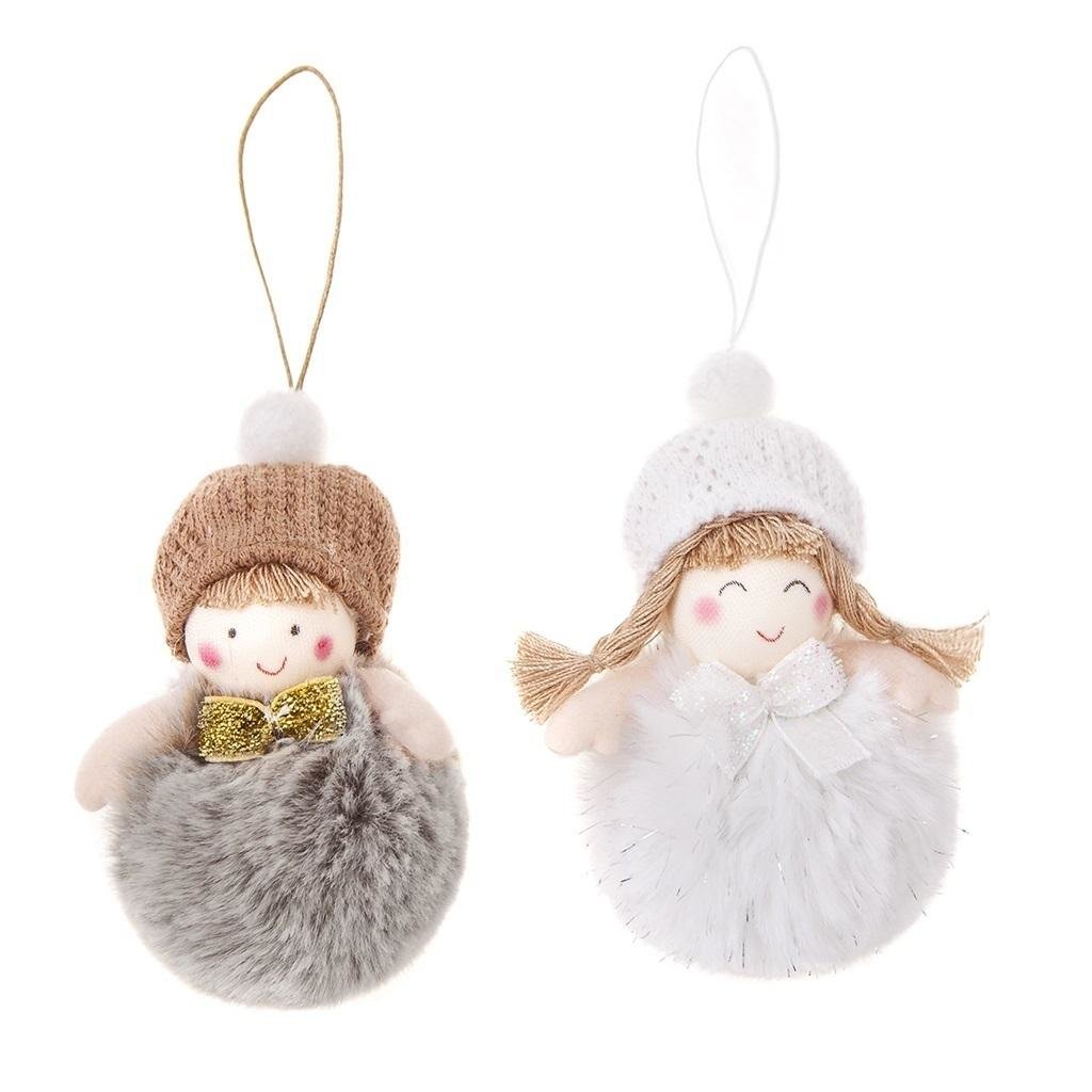 Futerkowe zawieszki z dziewczynką i chłopcem w dzianinowych czapeczkach sprawdzą się idealne jako ozdoby choinkowe lub dodatkowe elementy do większych projektów np. świątecznych wieńców lub girland. Doskonałe również jako drobny upominek lub element dekor