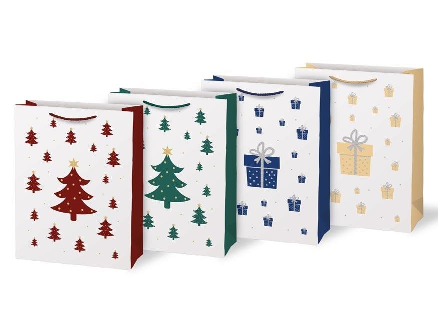 Torebka papierowa z nadrukiem. Torebka ma mocny uchwyt oraz zawieszkę. Wymiar: 260mm x 320mm x 138mm (szer. x wys. x gł.)