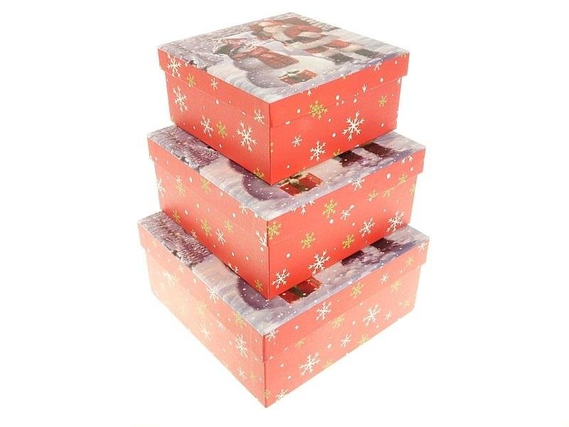 Zestaw 3 pudełek prezentowych z motywem świątecznym, S-15,5x15,5x7,5cm; M-18x18x8,5cm; L-20x20x9,5cm. číst celé