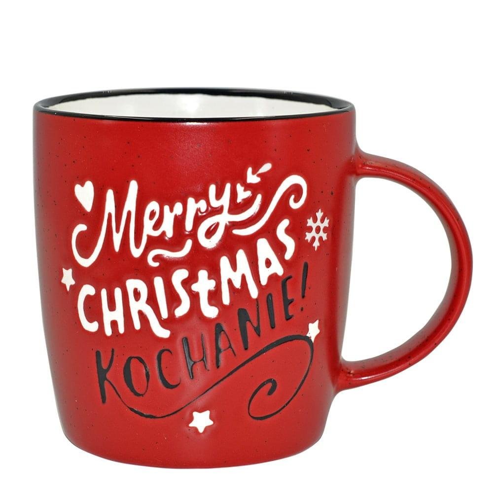 Kubek ceramiczny, ręcznie malowany z tłoczoną świąteczną ilustracją oraz tekstem. Cały kubek oraz uchwyt jest w jednym kolorze z delikatnymi tłoczonymi czarnymi plamkami. Brzeg kubka czarny, środek biały, Zapakowany w biały kartonik bez koloru. Każdy kubek UP to idealny pomysł na świąteczny...