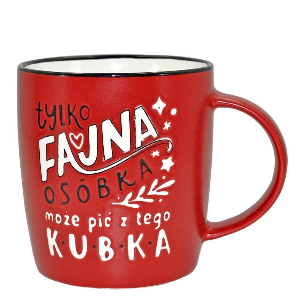 Kubek ceramiczny, ręcznie malowany z tłoczoną świąteczną ilustracją oraz tekstem. Cały kubek oraz uchwyt jest w jednym kolorze z delikatnymi tłoczonymi czarnymi plamkami. Brzeg kubka czarny, środek biały, Zapakowany w biały kartonik bez koloru. Każdy kubek UP to idealny pomysł na świąteczny...