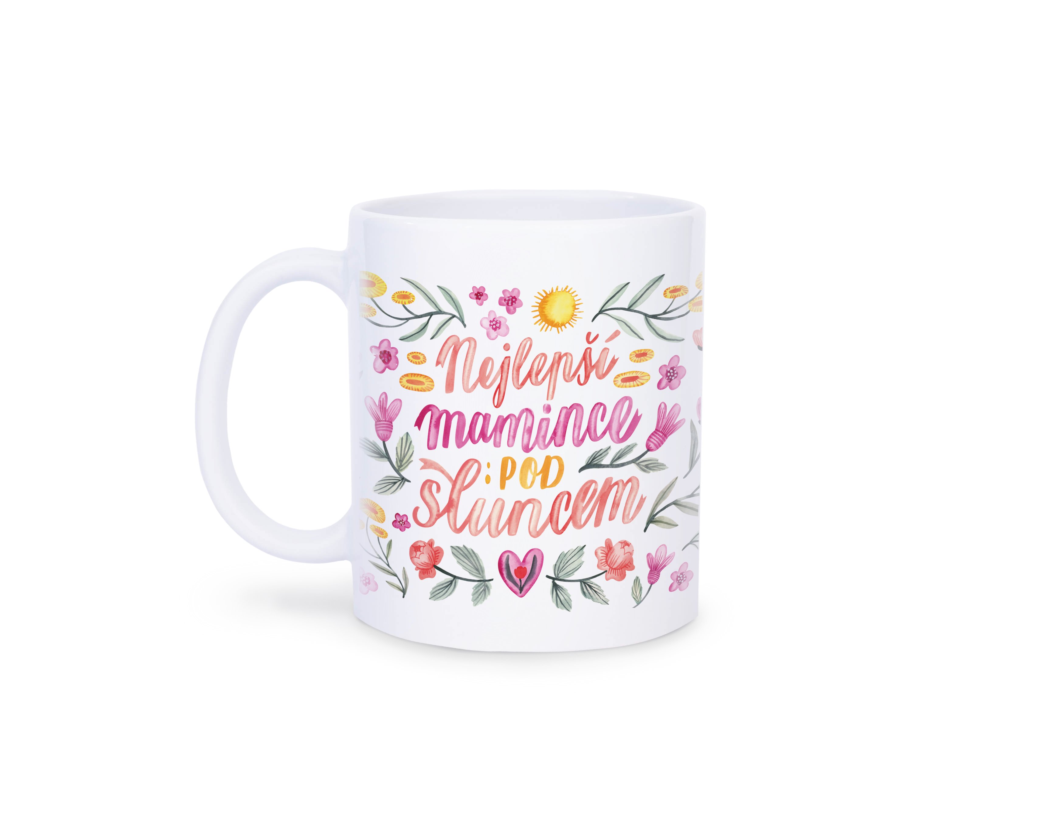 Ručně psané "Nejlepší mamince pod sluncem" dodává hrnku osobitý šmrnc a zajišťuje, že si vaše maminka uvědomí, jak moc ji máte rádi.