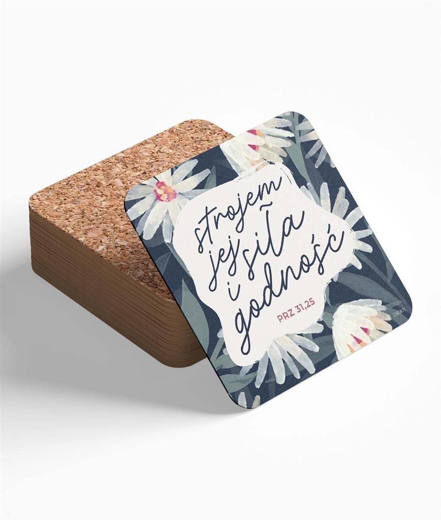 Podstawka korkowa pod kubek o wymiarach 10cm x 10cm.