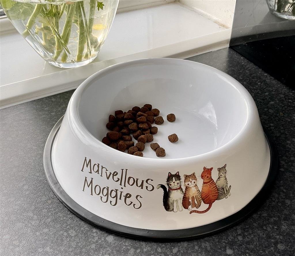 Urocza miska z motywem kotków z przodu i z tyłu. Wykonana z wysokiej jakości materiałów. Wokół podstawy znajduje się antypoślizgowy pierścień. Wymiary: 21 cm x 5 cm.
