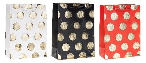 Torebka ozdobna z brokatem Lux 210 gsm, pakowana po 12 sztuk, mix 4 wzorów, TG-23099-HS-A4