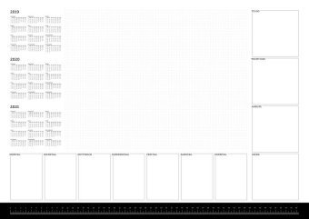 Stylische und übersichtliche Schreibtischunterlage aus Papier zum Abreißen in schwarz/weiß fürs Büro oder zu Hause, mit Wochenplaner von Montag bis Sonntag um die Woche zu organisieren. Inklusive aktuellem 3-Jahres-Kalendarium 2019, 2020, 2021. Die zeitlose und schlichte Unterlage mit 25 Blatt...