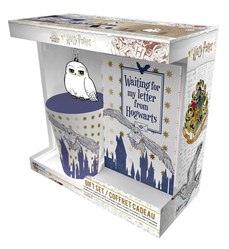 Tato pěkná dárková sada dopis z Bradavic je určena pro fanoušky příběhů Harry Pottera, kteří v ní naleznou hrnek s objemem 250 ml, stylovou gumovou klíčenku a linkovaný zápisník v pevné vazbě formátu A6.
