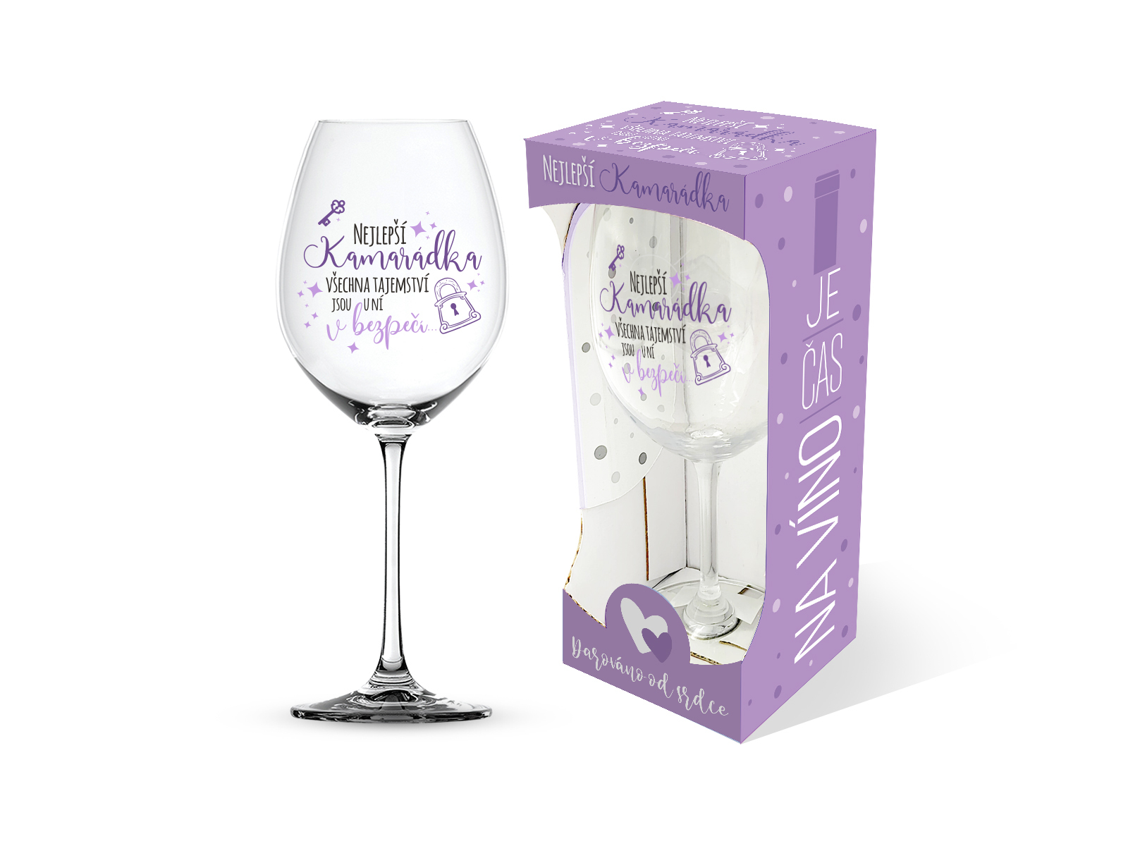 Udělejte radost své nejlepší kamarádce originálním dárkem, který vyjadřuje, jak moc si jí ceníte. Tato sklenice na víno s motivem „nejlepší kamarádka - všechna tajemství jsou u ní v bezpečí“ je skvělým způsobem, jak to říct bez slov.