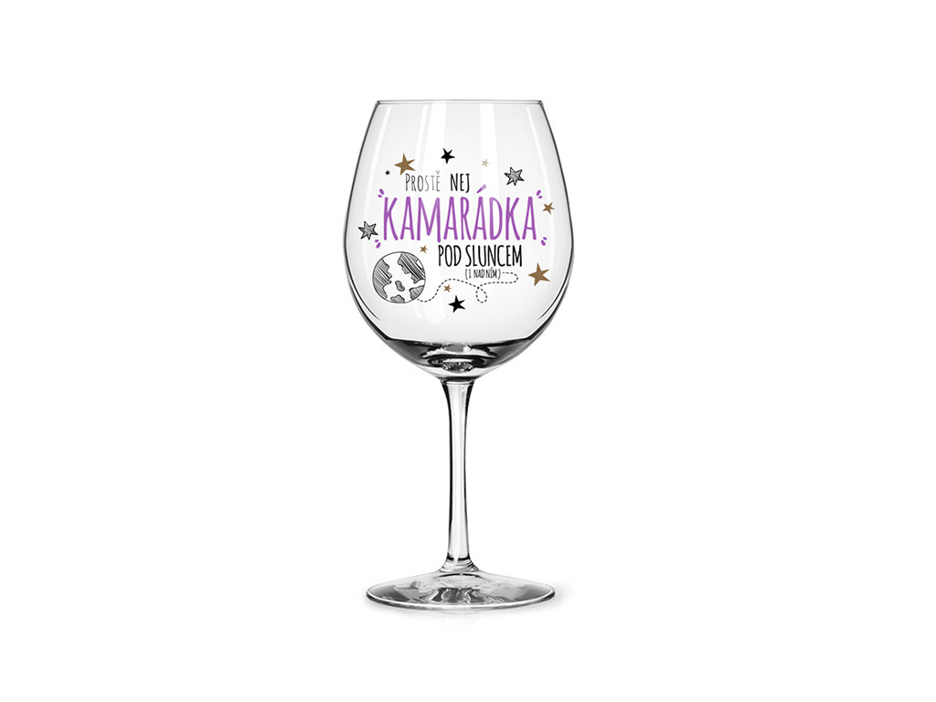 - Sklenice na víno se speciálním potiskem „Nej kamarádka pod sluncem“