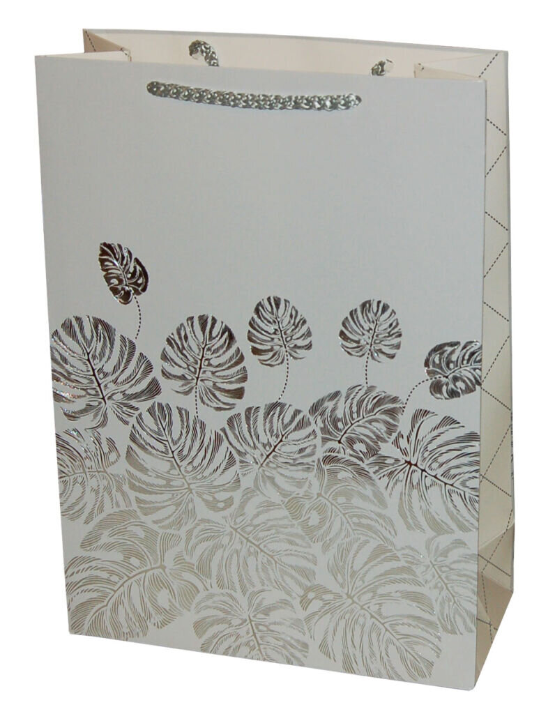 Dárková papírová taška Gold T2-Z se vzorem listů ve stříbrném provedení. číst celé