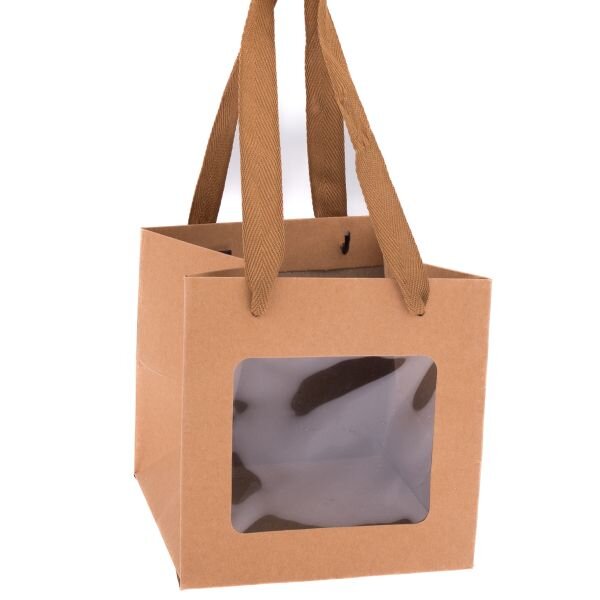 Papírová taška 15x15x15 cm s průhledem - sada 12ks, 12/600