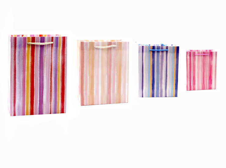 Dárková taška - Pruhovaná s glitrem/32x26x12 (mix)