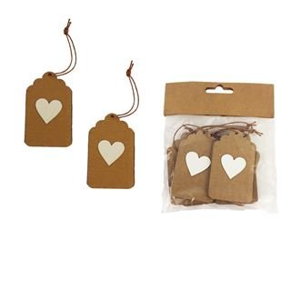 Sada jmenovek na dárky. Sada obsahuje 6 jmenovek. Rozměry : 4,5 x 0,2 cm, výška 7,5 cm. Barva : kombinace přírodní s bílou. Materiál : papír.