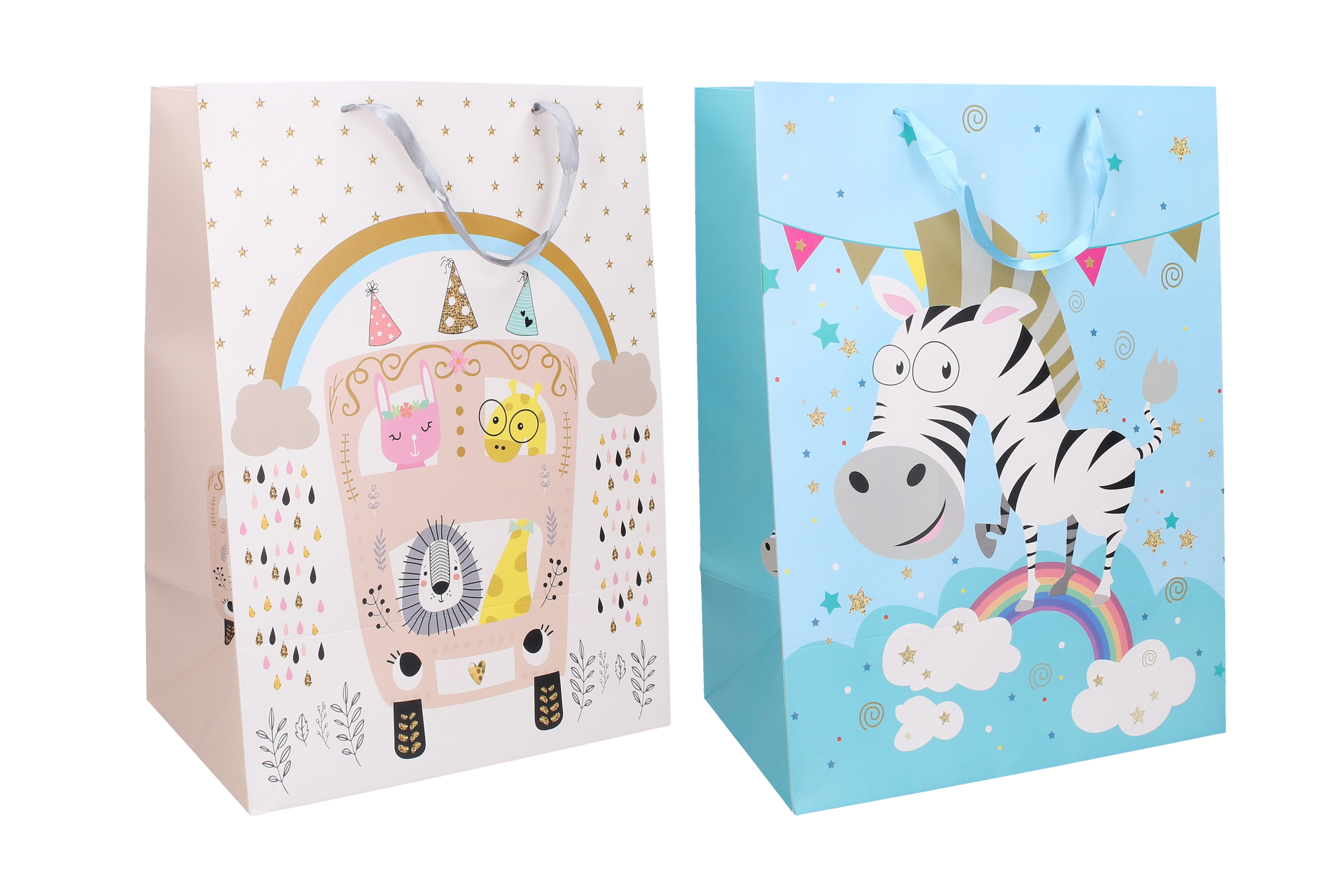 Tato taška v rozměrech 30 x 42 x 20 cm nabízí dostatek místa pro balení různorodých dárků, zejména pro děti, díky svému dětskému motivu, který rozzáří oči malých i velkých obdarovaných. Vybrat si můžete ze dvou variant, které vám umožní vybrat ideální design podle příležitosti i vkusu.