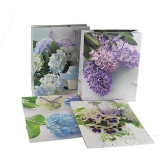 Sada dárkových tašek.Sada obsahuje 4 tašky, 4 druhy.Rozměry : 18 × 10 cm, výška 23 cm. Materiál : papír.