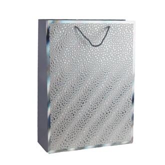 Dárková taška.Rozměry : 31 × 12 cm, výška 42 cm.Barva : stříbrnáMateriál : papír číst celé