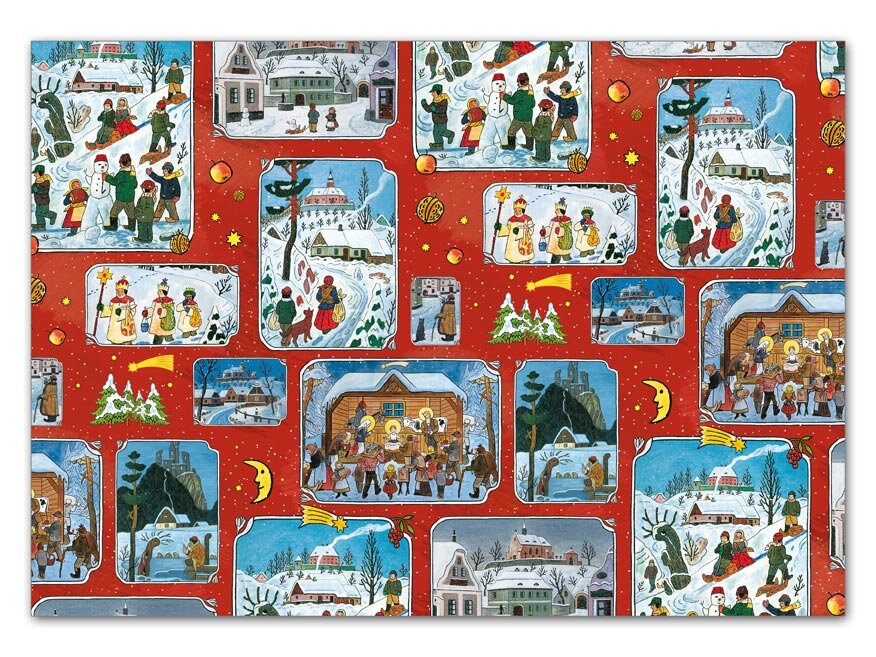 Balicí papír v rolích s motivem Josefa Lady. U vánočního dárku je velmi důležitý obsah, ale i to, aby byl u stromečku krásně zabalený. Pořiďte si u nás vánoční dárkový balicí papír s motivem Josefa Lady. Nezapomeňte si koupit i pěknou stužku a jmenovky na dárek.