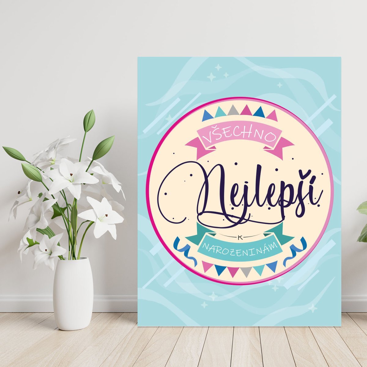 Dárková cedulka Všechno nejlepší k narozeninám: 30x40 cm
