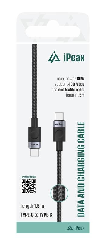 iPEAX textilní kabel USB-C / USB-C 1,5M, USB 2.0 černý