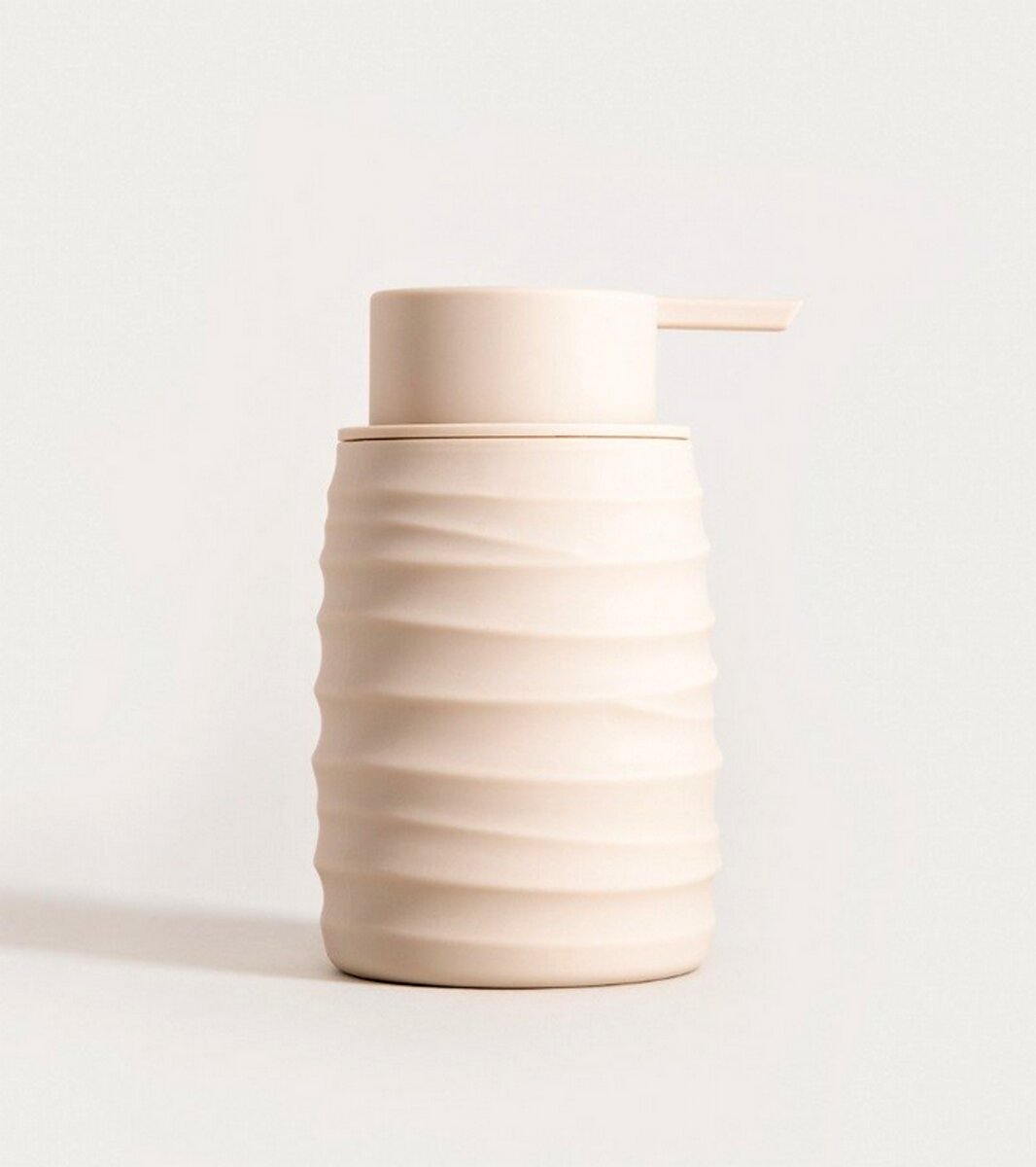 Moderní design v módní béžové barvě - S jemným reliéfem na povrchu - Kompaktní a praktický - Ideální pro tekuté mýdlo, tělové mléko nebo jiné kosmetické přípravky