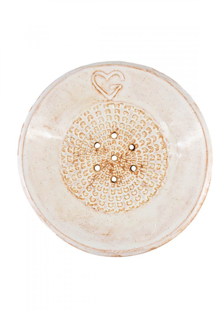 Kulatá keramická mýdlenka s otvory na odtok vody zajistí dlouhou trvanlivost tuhých šampónů a kondicionérů. Goodie mýdlenky jsou stylové, takže poslouží i jako dekorace do koupelny. Vyrábí se v chráněné dílně. Každá mýdlenka je originální.