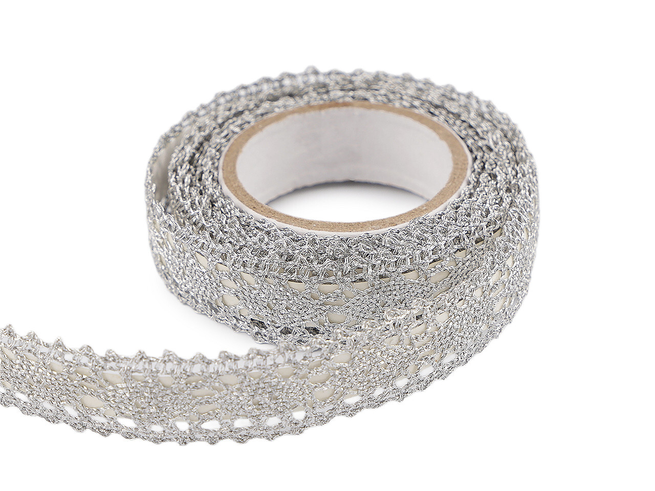 Samolepicí krajka s metalickým efektem působí luxusním dojmem, vašim výrobkům dodá lesk a slavnostní nádech. Práce s ní je velmi jednoduchá, stačí odstranit spodní krycí papír a samolepicí vrstva je připravená k lepení.