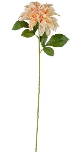 Naturalnie wyglądająca sztuczna dalia z gęsto osadzonymi płatkami. Kwiat dostępny w miksie kolorystycznym. Gałązki z liśćmi dodają naturalnego wyglądu dekoracji. Gałązka ma długość 60 cm.