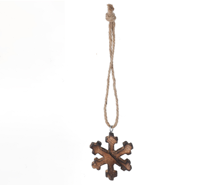 Dekorace vánoční k zavěšení dřevěná - 6cm vločka