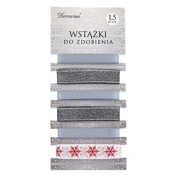 Sada stříbrných dekoračních vánočních stuh 1,5m 6ks