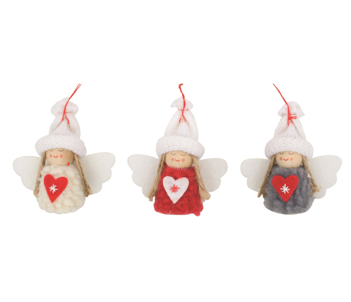 Dekorace vánoční k zavěšení filcová - anděl v kožíšku 7cm mix